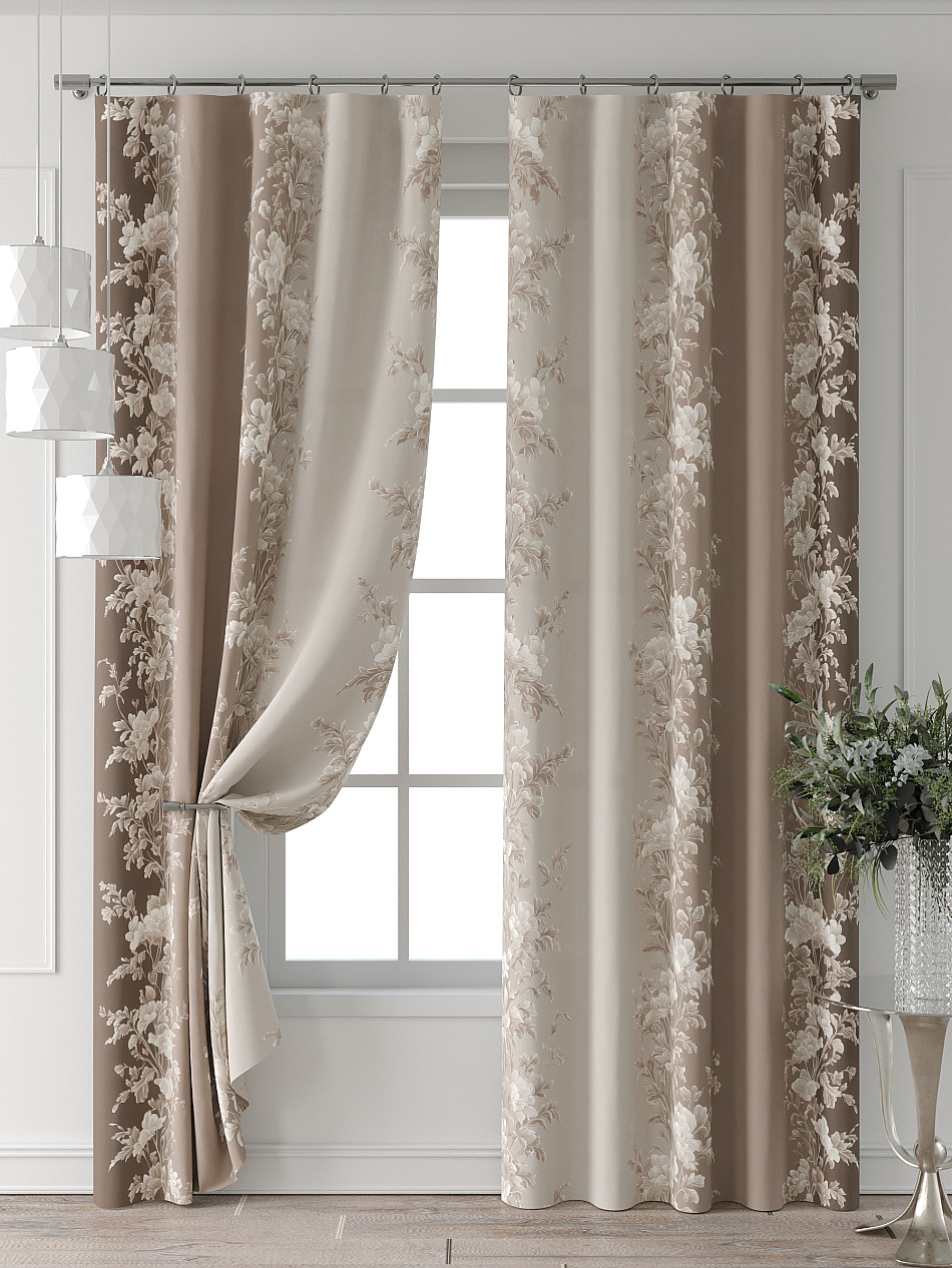 Портьера 2 шт. Подхват - доп.услуга. Комплект штор из легкой портьерной ткани (габардин) оформлен печатным рисунком. Печатный рисунок дает широкие возможности обновить интерьер фактически нет требуя ремонта за счет огромного выбора. Ткани с печатным рисунком безопасны и не содержат токсичных веществ. Не смотря на то что, материал легкий, он имеет высокую плотность, мало загрязнятся и не требует особого ухода даже после стирки, что важно для кухонных занавесок. Шторы не выцветают, не растягиваются, превосходно драпируются, образуя струящиеся складки. Прекрасное решение для создания красоты и уюта с помощью уникальных дизайнов.