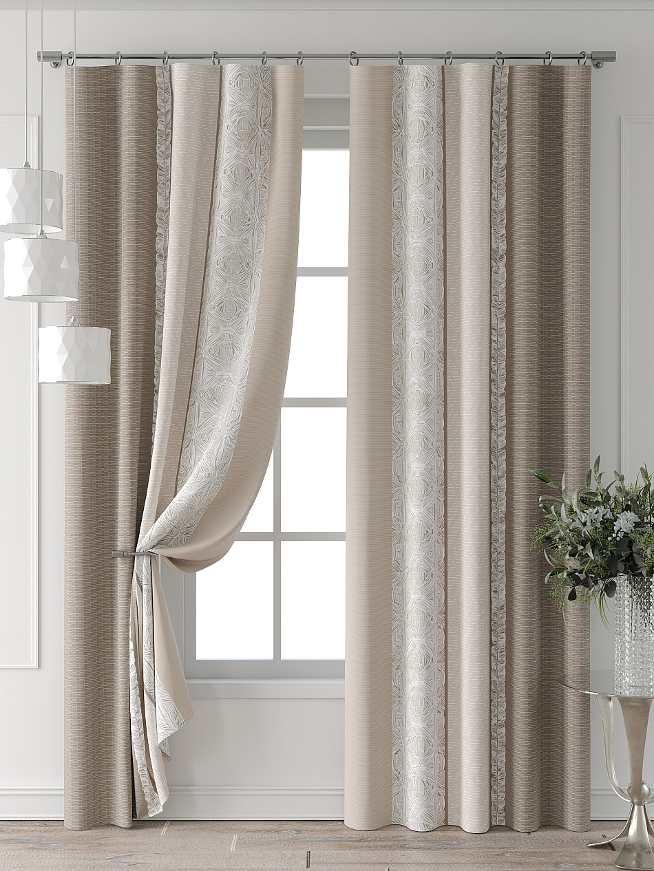 Портьера 150х240 см — 2 шт. ( Изменить высоту) Крепление: шторная лента (крючки), кулиска Подробнее