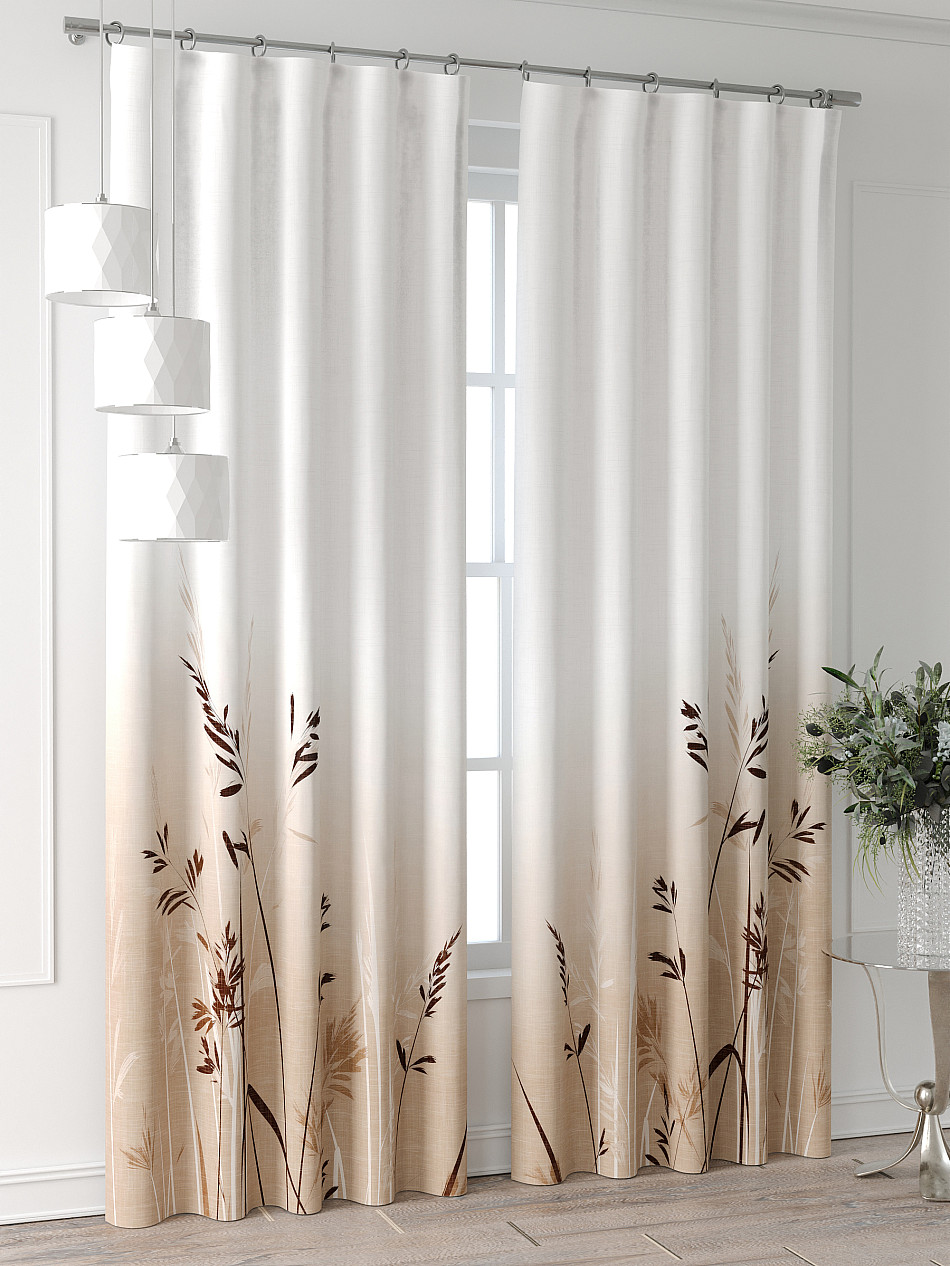 Портьера 2 шт. Подхват - доп.услуга. Комплект штор из легкой портьерной ткани (габардин) оформлен печатным рисунком. Печатный рисунок дает широкие возможности обновить интерьер фактически нет требуя ремонта за счет огромного выбора. Ткани с печатным рисунком безопасны и не содержат токсичных веществ. Не смотря на то что, материал легкий, он имеет высокую плотность, мало загрязнятся и не требует особого ухода даже после стирки, что важно для кухонных занавесок. Шторы не выцветают, не растягиваются, превосходно драпируются, образуя струящиеся складки. Прекрасное решение для создания красоты и уюта с помощью уникальных дизайнов.