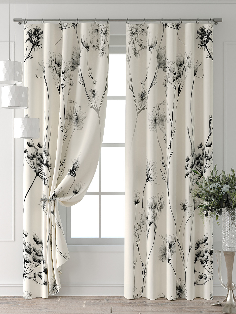 Портьера 2 шт. Подхват - доп.услуга. Комплект штор из легкой портьерной ткани (габардин) оформлен печатным рисунком. Печатный рисунок дает широкие возможности обновить интерьер фактически нет требуя ремонта за счет огромного выбора. Ткани с печатным рисунком безопасны и не содержат токсичных веществ. Не смотря на то что, материал легкий, он имеет высокую плотность, мало загрязнятся и не требует особого ухода даже после стирки, что важно для кухонных занавесок. Шторы не выцветают, не растягиваются, превосходно драпируются, образуя струящиеся складки. Прекрасное решение для создания красоты и уюта с помощью уникальных дизайнов.