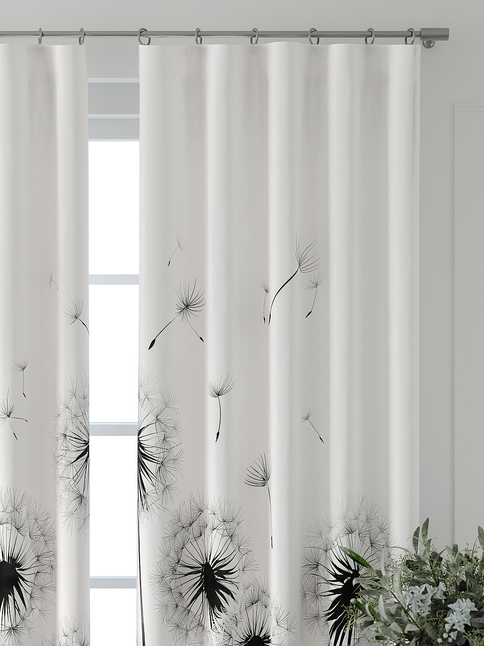 По верхнему краю портьер пришита шторная тесьма 6 см, с ее помощью затянув узелки от кордовых нитей с обеих сторон и стянув их до нужного размера можно сформировать округлые складки, далее вставить крючки в кармашки и повесить на карниз. Обязательно проверьте кордовые нити – они должны быть надежно завязаны, в противном случае во время стягивания они могут вылететь. Шторная тесьма имеет два ряда кармашков, с их помощью можно регулировать не только длину, но и ширину. Такое крепление подходит для всех типов карнизов.