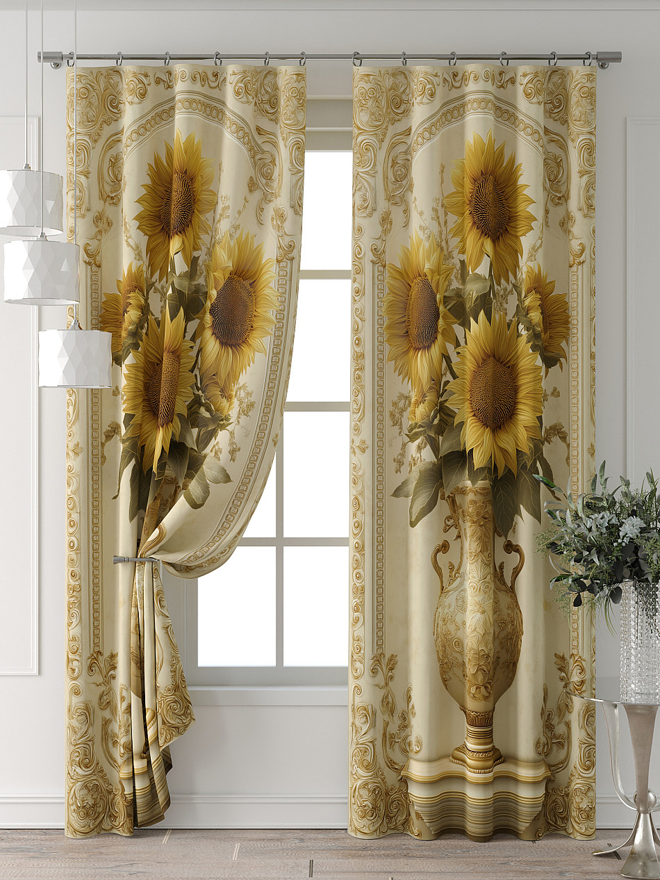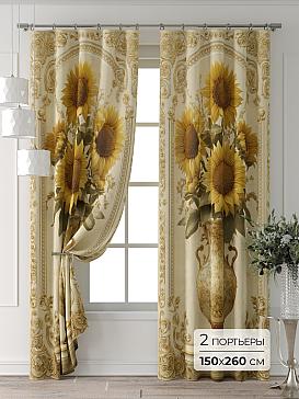 Портьера 2 шт. Подхват - доп.услуга. Комплект штор из легкой портьерной ткани (габардин) оформлен печатным рисунком. Печатный рисунок дает широкие возможности обновить интерьер фактически нет требуя ремонта за счет огромного выбора. Ткани с печатным рисунком безопасны и не содержат токсичных веществ. Не смотря на то что, материал легкий, он имеет высокую плотность, мало загрязнятся и не требует особого ухода даже после стирки, что важно для кухонных занавесок. Шторы не выцветают, не растягиваются, превосходно драпируются, образуя струящиеся складки. Прекрасное решение для создания красоты и уюта с помощью уникальных дизайнов.