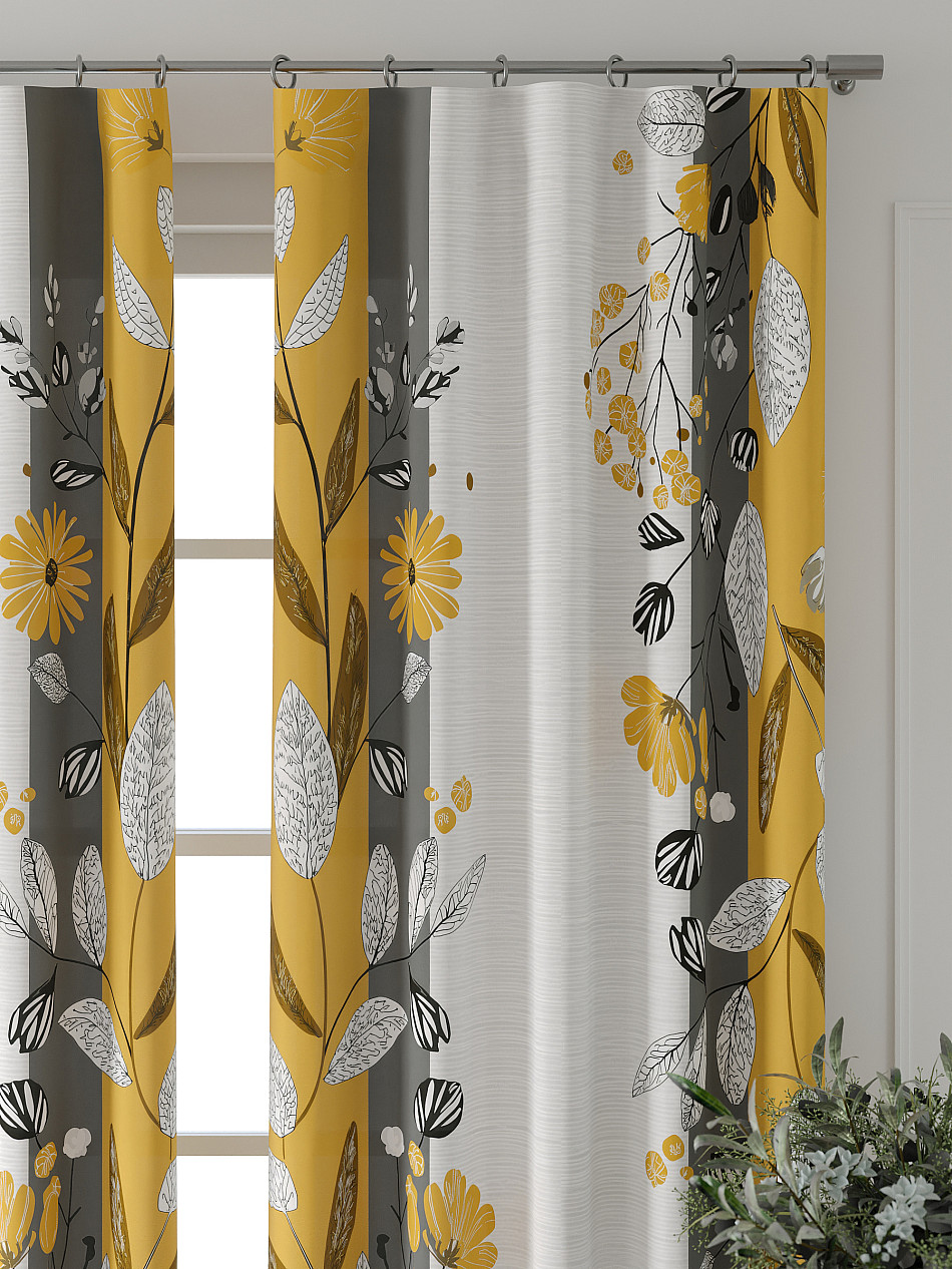 Портьера 2 шт. Подхват - доп.услуга. Комплект штор из легкой портьерной ткани (габардин) оформлен печатным рисунком. Печатный рисунок дает широкие возможности обновить интерьер фактически нет требуя ремонта за счет огромного выбора. Ткани с печатным рисунком безопасны и не содержат токсичных веществ. Не смотря на то что, материал легкий, он имеет высокую плотность, мало загрязнятся и не требует особого ухода даже после стирки, что важно для кухонных занавесок. Шторы не выцветают, не растягиваются, превосходно драпируются, образуя струящиеся складки. Прекрасное решение для создания красоты и уюта с помощью уникальных дизайнов.
