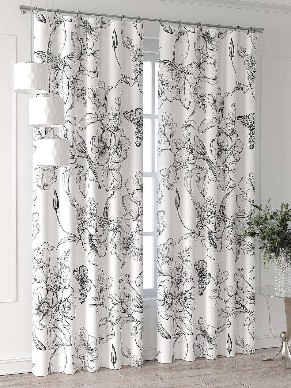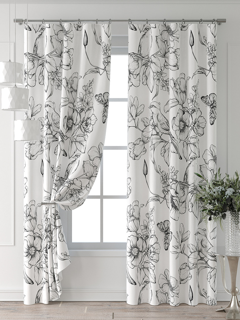 Портьера 2 шт. Подхват - доп.услуга. Комплект штор из легкой портьерной ткани (габардин) оформлен печатным рисунком. Печатный рисунок дает широкие возможности обновить интерьер фактически нет требуя ремонта за счет огромного выбора. Ткани с печатным рисунком безопасны и не содержат токсичных веществ. Не смотря на то что, материал легкий, он имеет высокую плотность, мало загрязнятся и не требует особого ухода даже после стирки, что важно для кухонных занавесок. Шторы не выцветают, не растягиваются, превосходно драпируются, образуя струящиеся складки. Прекрасное решение для создания красоты и уюта с помощью уникальных дизайнов.