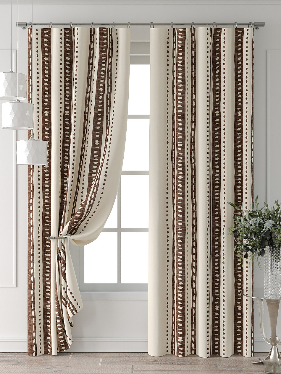 Портьеры 2 шт: Комплект штор из портьерной ткани с печатным рисунком. Фактура ткани прекрасно гармонирует с любым интерьером, а печатный рисунок дает широкие возможности обновить интерьер, фактически не требуя ремонта, за счет огромного выбора. Ткань износостойкая и не требует особого ухода, превосходно драпируется образуя струящиеся складки. Прекрасное решение для создания красоты и уюта с помощью уникальных дизайнов.