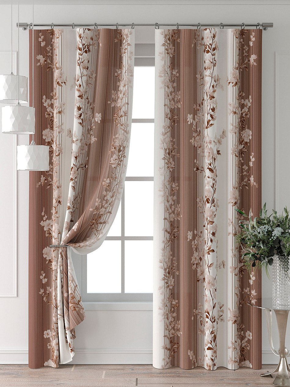 Портьеры 2 шт: Комплект штор из портьерной ткани с печатным рисунком. Фактура ткани прекрасно гармонирует с любым интерьером, а печатный рисунок дает широкие возможности обновить интерьер, фактически не требуя ремонта, за счет огромного выбора. Ткань износостойкая и не требует особого ухода, превосходно драпируется образуя струящиеся складки. Прекрасное решение для создания красоты и уюта с помощью уникальных дизайнов.