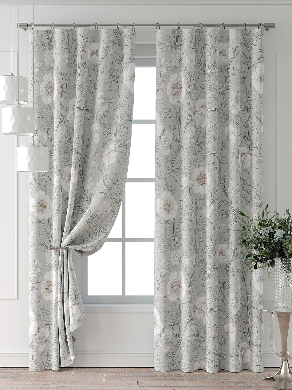 Портьера 2 шт. Подхват - доп.услуга. Комплект штор из легкой портьерной ткани (габардин) оформлен печатным рисунком. Печатный рисунок дает широкие возможности обновить интерьер фактически нет требуя ремонта за счет огромного выбора. Ткани с печатным рисунком безопасны и не содержат токсичных веществ. Не смотря на то что, материал легкий, он имеет высокую плотность, мало загрязнятся и не требует особого ухода даже после стирки, что важно для кухонных занавесок. Шторы не выцветают, не растягиваются, превосходно драпируются, образуя струящиеся складки. Прекрасное решение для создания красоты и уюта с помощью уникальных дизайнов.