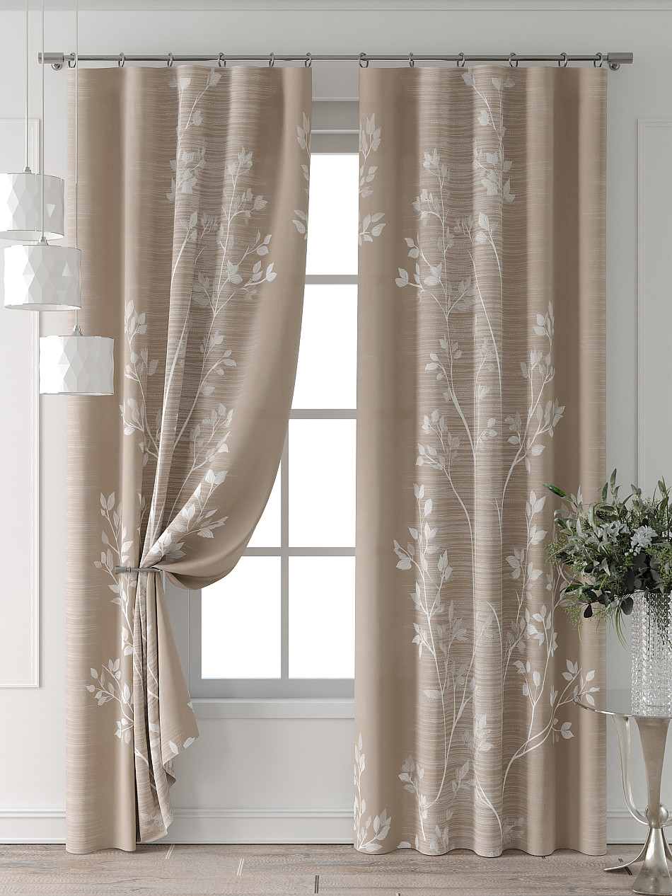 Портьера 150х240 см — 2 шт. ( Изменить высоту) Крепление: шторная лента (крючки), кулиска Подробнее