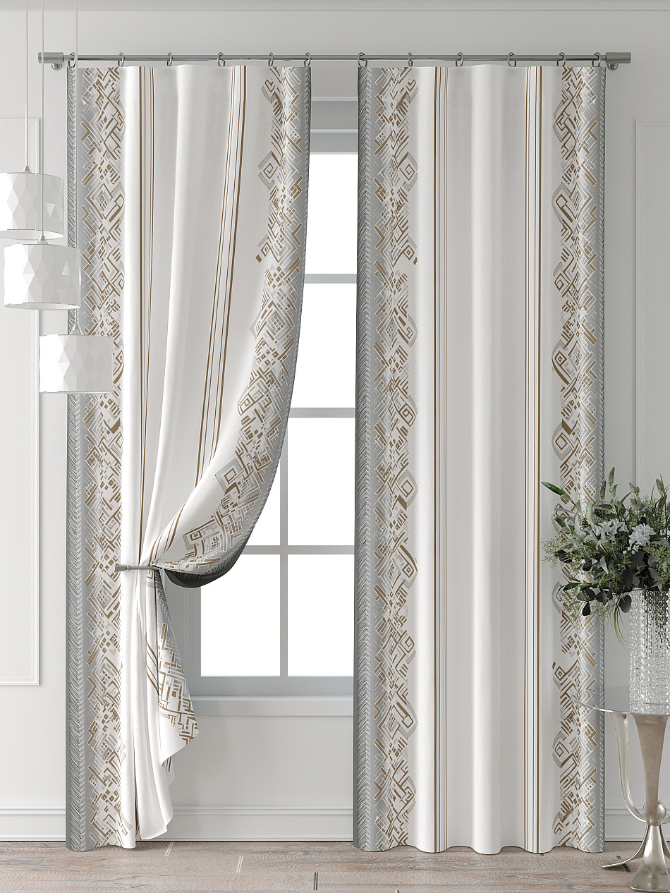 Портьера 2 шт. Подхват - доп.услуга. Комплект штор из легкой портьерной ткани (габардин) оформлен печатным рисунком. Печатный рисунок дает широкие возможности обновить интерьер фактически нет требуя ремонта за счет огромного выбора. Ткани с печатным рисунком безопасны и не содержат токсичных веществ. Не смотря на то что, материал легкий, он имеет высокую плотность, мало загрязнятся и не требует особого ухода даже после стирки, что важно для кухонных занавесок. Шторы не выцветают, не растягиваются, превосходно драпируются, образуя струящиеся складки. Прекрасное решение для создания красоты и уюта с помощью уникальных дизайнов.