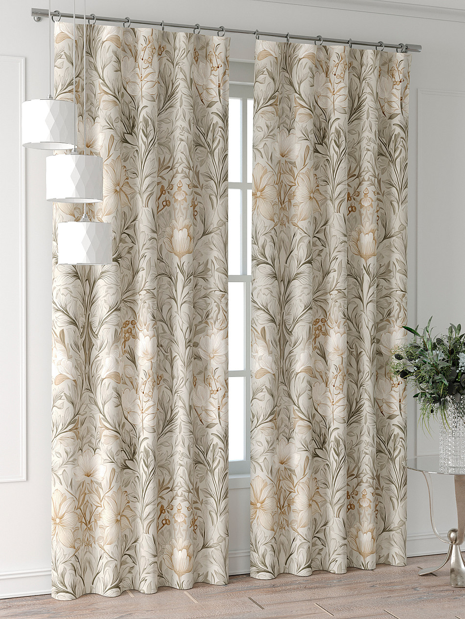 Портьера 150х240 см — 2 шт. ( Изменить высоту) Крепление: шторная лента (крючки), кулиска Подробнее