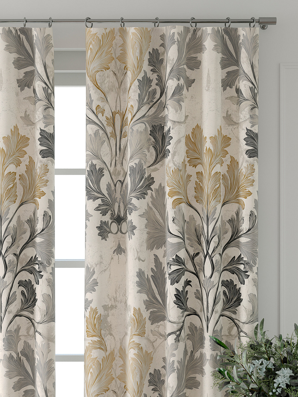- Шторы с вензелями серые