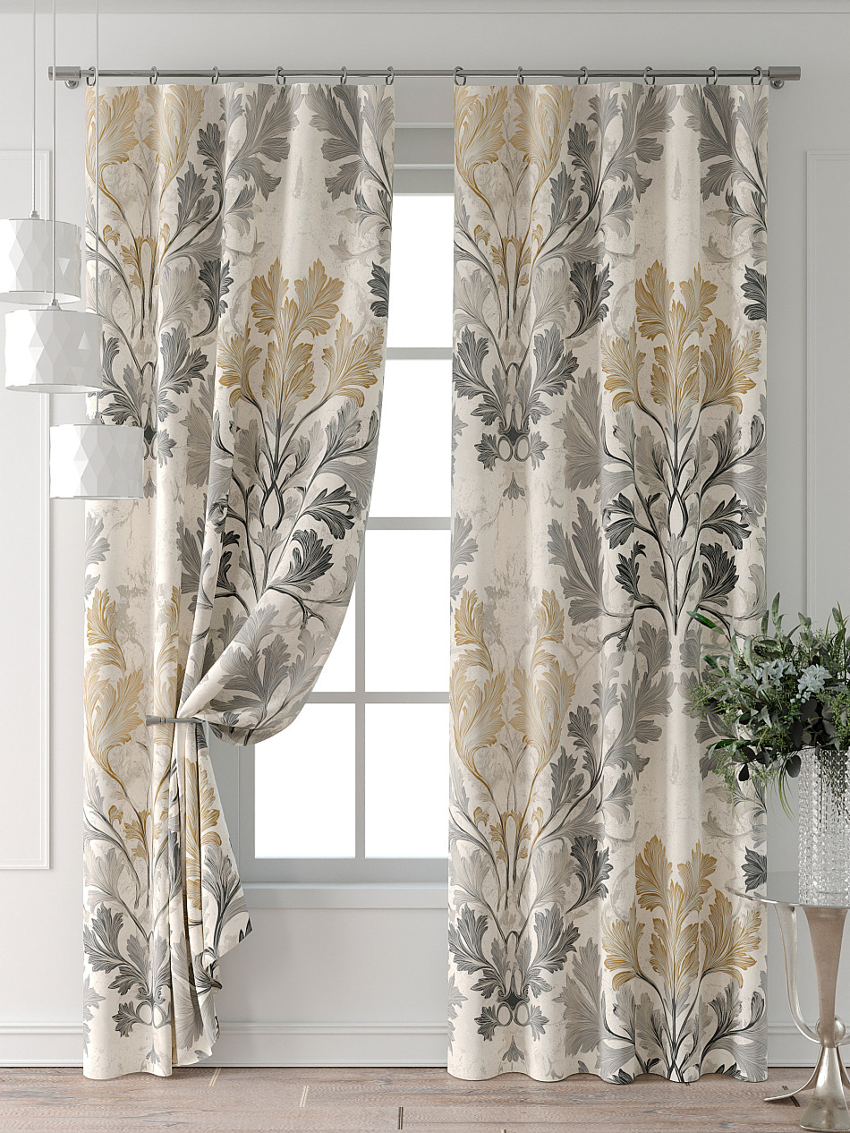 Портьера 2 шт. Подхват - доп.услуга. Комплект штор из легкой портьерной ткани (габардин) оформлен печатным рисунком. Печатный рисунок дает широкие возможности обновить интерьер фактически нет требуя ремонта за счет огромного выбора. Ткани с печатным рисунком безопасны и не содержат токсичных веществ. Не смотря на то что, материал легкий, он имеет высокую плотность, мало загрязнятся и не требует особого ухода даже после стирки, что важно для кухонных занавесок. Шторы не выцветают, не растягиваются, превосходно драпируются, образуя струящиеся складки. Прекрасное решение для создания красоты и уюта с помощью уникальных дизайнов.