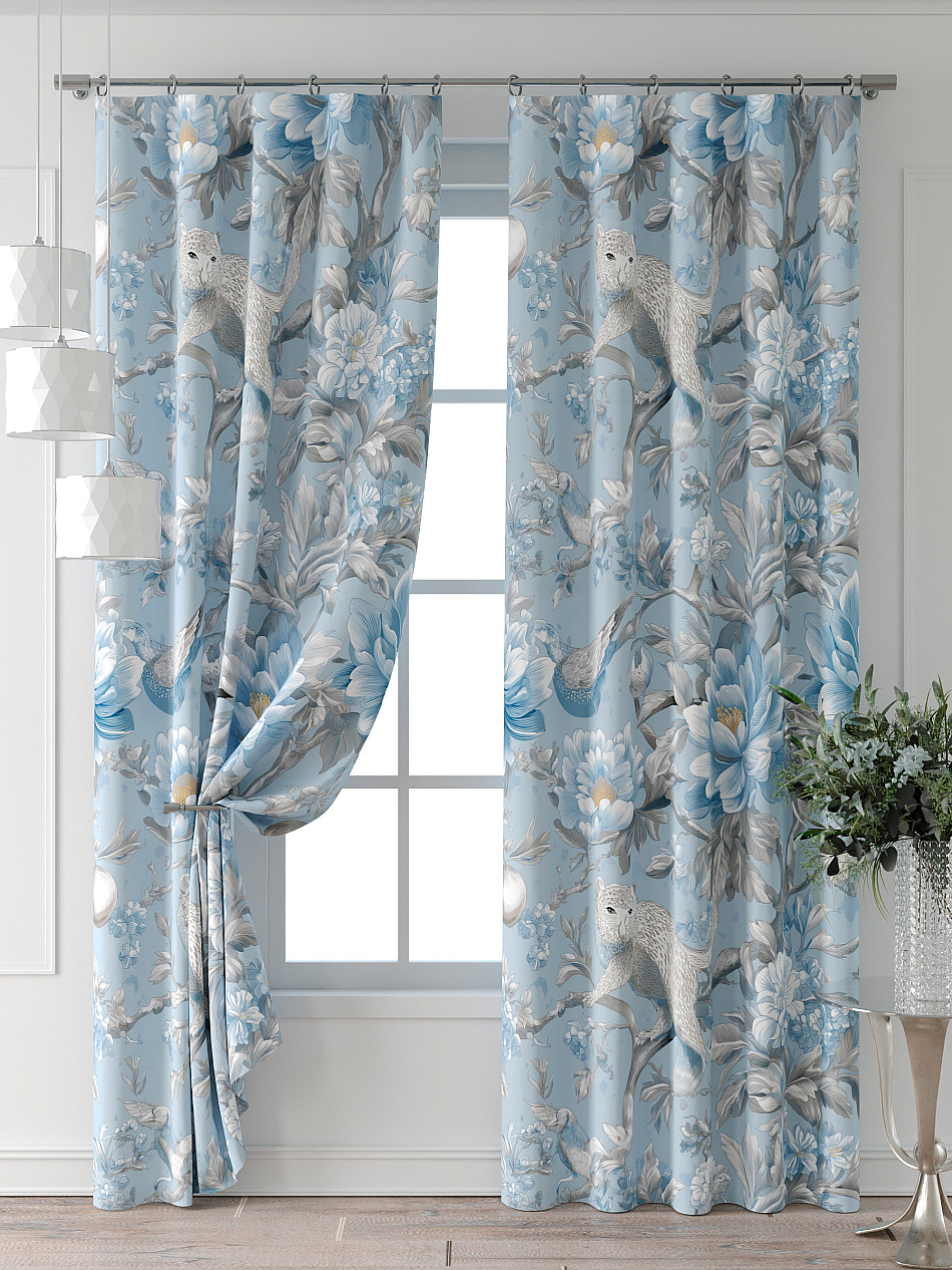 Портьера 2 шт. Подхват - доп.услуга. Комплект штор из легкой портьерной ткани (габардин) оформлен печатным рисунком. Печатный рисунок дает широкие возможности обновить интерьер фактически нет требуя ремонта за счет огромного выбора. Ткани с печатным рисунком безопасны и не содержат токсичных веществ. Не смотря на то что, материал легкий, он имеет высокую плотность, мало загрязнятся и не требует особого ухода даже после стирки, что важно для кухонных занавесок. Шторы не выцветают, не растягиваются, превосходно драпируются, образуя струящиеся складки. Прекрасное решение для создания красоты и уюта с помощью уникальных дизайнов.