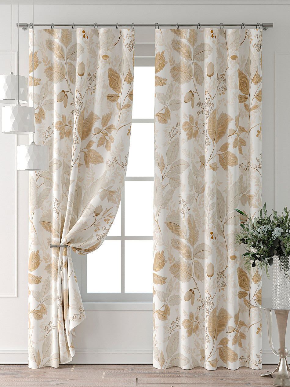 Портьера 2 шт. Подхват - доп.услуга. Комплект штор из легкой портьерной ткани (габардин) оформлен печатным рисунком. Печатный рисунок дает широкие возможности обновить интерьер фактически нет требуя ремонта за счет огромного выбора. Ткани с печатным рисунком безопасны и не содержат токсичных веществ. Не смотря на то что, материал легкий, он имеет высокую плотность, мало загрязнятся и не требует особого ухода даже после стирки, что важно для кухонных занавесок. Шторы не выцветают, не растягиваются, превосходно драпируются, образуя струящиеся складки. Прекрасное решение для создания красоты и уюта с помощью уникальных дизайнов.