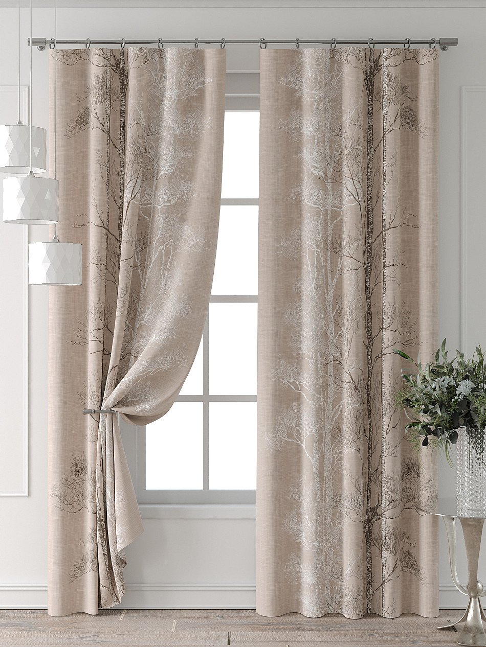 Портьера 2 шт. Подхват - доп.услуга. Комплект штор из легкой портьерной ткани (габардин) оформлен печатным рисунком. Печатный рисунок дает широкие возможности обновить интерьер фактически нет требуя ремонта за счет огромного выбора. Ткани с печатным рисунком безопасны и не содержат токсичных веществ. Не смотря на то что, материал легкий, он имеет высокую плотность, мало загрязнятся и не требует особого ухода даже после стирки, что важно для кухонных занавесок. Шторы не выцветают, не растягиваются, превосходно драпируются, образуя струящиеся складки. Прекрасное решение для создания красоты и уюта с помощью уникальных дизайнов.