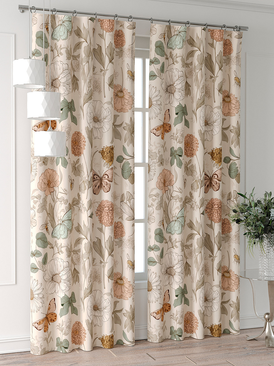 Портьера 2 шт. Подхват - доп.услуга. Комплект штор из легкой портьерной ткани (габардин) оформлен печатным рисунком. Печатный рисунок дает широкие возможности обновить интерьер фактически нет требуя ремонта за счет огромного выбора. Ткани с печатным рисунком безопасны и не содержат токсичных веществ. Не смотря на то что, материал легкий, он имеет высокую плотность, мало загрязнятся и не требует особого ухода даже после стирки, что важно для кухонных занавесок. Шторы не выцветают, не растягиваются, превосходно драпируются, образуя струящиеся складки. Прекрасное решение для создания красоты и уюта с помощью уникальных дизайнов.