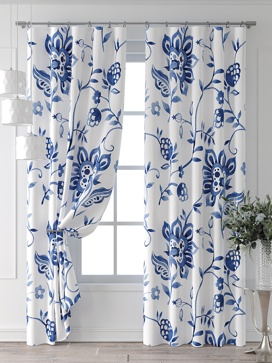 Портьера 2 шт. Подхват - доп.услуга. Комплект штор из легкой портьерной ткани (габардин) оформлен печатным рисунком. Печатный рисунок дает широкие возможности обновить интерьер фактически нет требуя ремонта за счет огромного выбора. Ткани с печатным рисунком безопасны и не содержат токсичных веществ. Не смотря на то что, материал легкий, он имеет высокую плотность, мало загрязнятся и не требует особого ухода даже после стирки, что важно для кухонных занавесок. Шторы не выцветают, не растягиваются, превосходно драпируются, образуя струящиеся складки. Прекрасное решение для создания красоты и уюта с помощью уникальных дизайнов.
