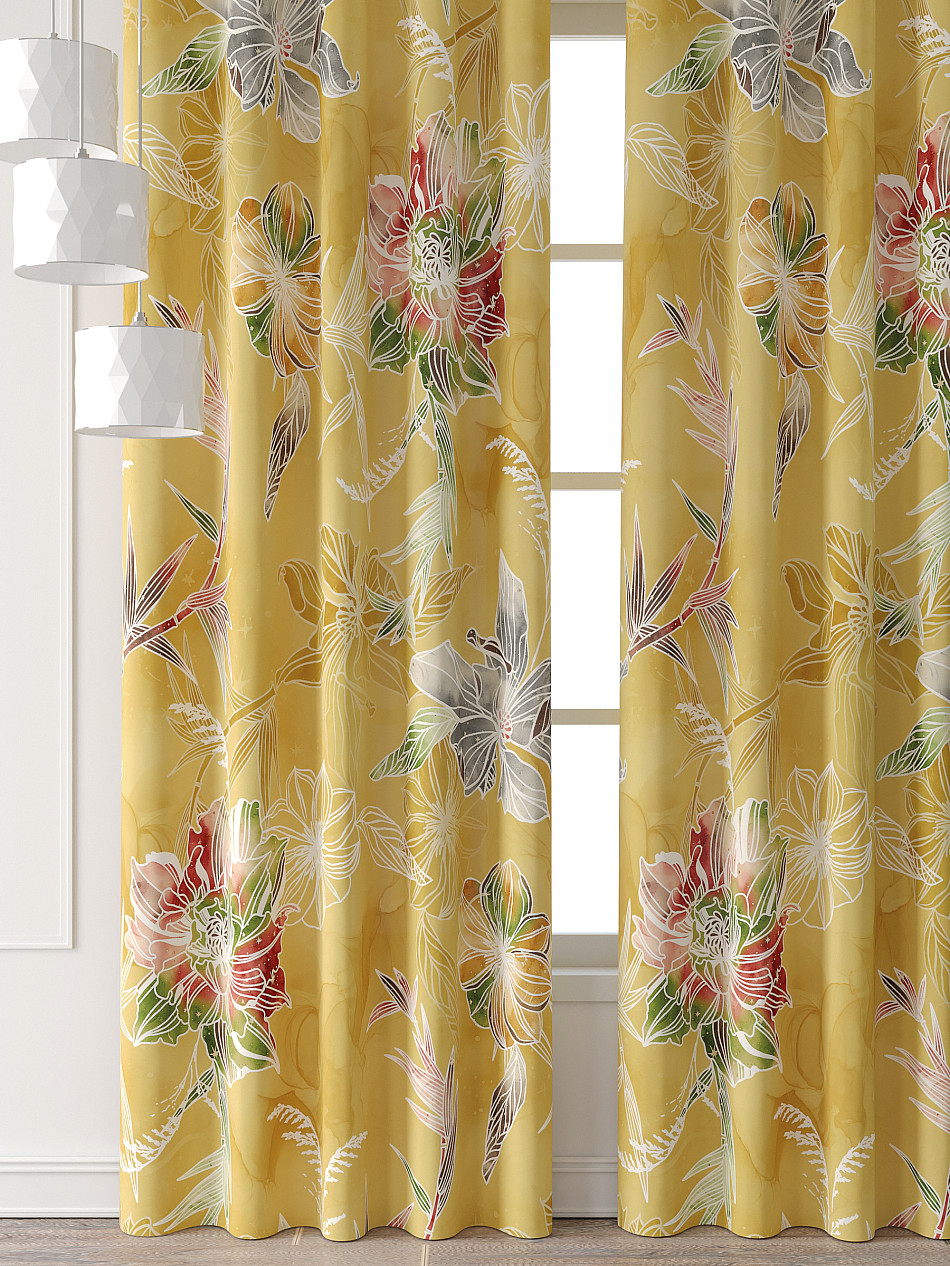 Портьеры 2 шт: Комплект штор из портьерной ткани с печатным рисунком. Фактура ткани прекрасно гармонирует с любым интерьером, а печатный рисунок дает широкие возможности обновить интерьер, фактически не требуя ремонта, за счет огромного выбора. Ткань износостойкая и не требует особого ухода, превосходно драпируется образуя струящиеся складки. Прекрасное решение для создания красоты и уюта с помощью уникальных дизайнов.