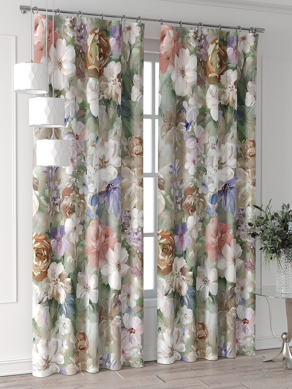 Портьера 2 шт. Подхват - доп.услуга. Комплект штор из легкой портьерной ткани (габардин) оформлен печатным рисунком. Печатный рисунок дает широкие возможности обновить интерьер фактически нет требуя ремонта за счет огромного выбора. Ткани с печатным рисунком безопасны и не содержат токсичных веществ. Не смотря на то что, материал легкий, он имеет высокую плотность, мало загрязнятся и не требует особого ухода даже после стирки, что важно для кухонных занавесок. Шторы не выцветают, не растягиваются, превосходно драпируются, образуя струящиеся складки. Прекрасное решение для создания красоты и уюта с помощью уникальных дизайнов.