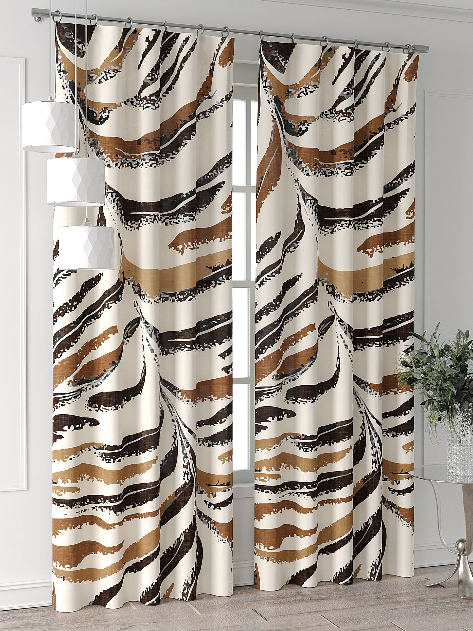 Портьеры 2 шт: Комплект штор из портьерной ткани с печатным рисунком. Фактура ткани прекрасно гармонирует с любым интерьером, а печатный рисунок дает широкие возможности обновить интерьер, фактически не требуя ремонта, за счет огромного выбора. Ткань износостойкая и не требует особого ухода, превосходно драпируется образуя струящиеся складки. Прекрасное решение для создания красоты и уюта с помощью уникальных дизайнов.