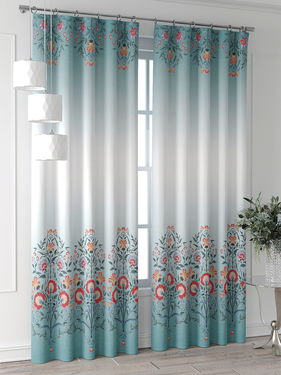 Градиент Орнамент Растения Фото принтАксессуары для оформления штор: