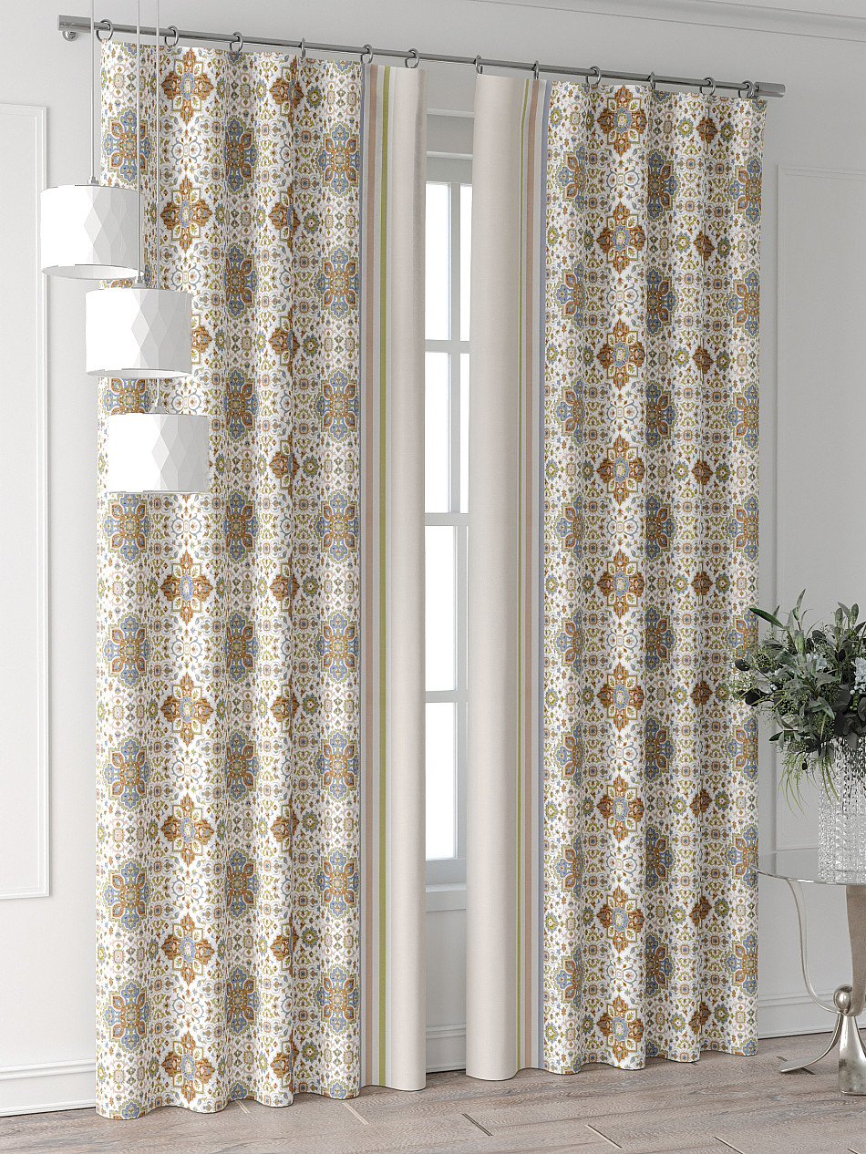 Портьера 2 шт. Подхват - доп.услуга. Комплект штор из легкой портьерной ткани (габардин) оформлен печатным рисунком. Печатный рисунок дает широкие возможности обновить интерьер фактически нет требуя ремонта за счет огромного выбора. Ткани с печатным рисунком безопасны и не содержат токсичных веществ. Не смотря на то что, материал легкий, он имеет высокую плотность, мало загрязнятся и не требует особого ухода даже после стирки, что важно для кухонных занавесок. Шторы не выцветают, не растягиваются, превосходно драпируются, образуя струящиеся складки. Прекрасное решение для создания красоты и уюта с помощью уникальных дизайнов.