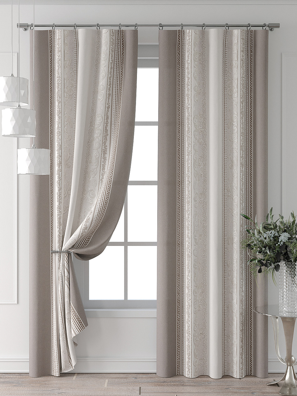 Портьера 150х240 см — 2 шт. ( Изменить высоту) Крепление: шторная лента (крючки), кулиска Подробнее