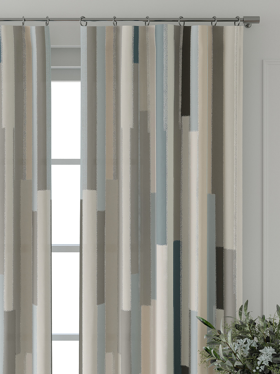 По верхнему краю портьер пришита шторная тесьма 6 см, с ее помощью затянув узелки от кордовых нитей с обеих сторон и стянув их до нужного размера можно сформировать округлые складки, далее вставить крючки в кармашки и повесить на карниз. Обязательно проверьте кордовые нити – они должны быть надежно завязаны, в противном случае во время стягивания они могут вылететь. Шторная тесьма имеет два ряда кармашков, с их помощью можно регулировать не только длину, но и ширину. Такое крепление подходит для всех типов карнизов.