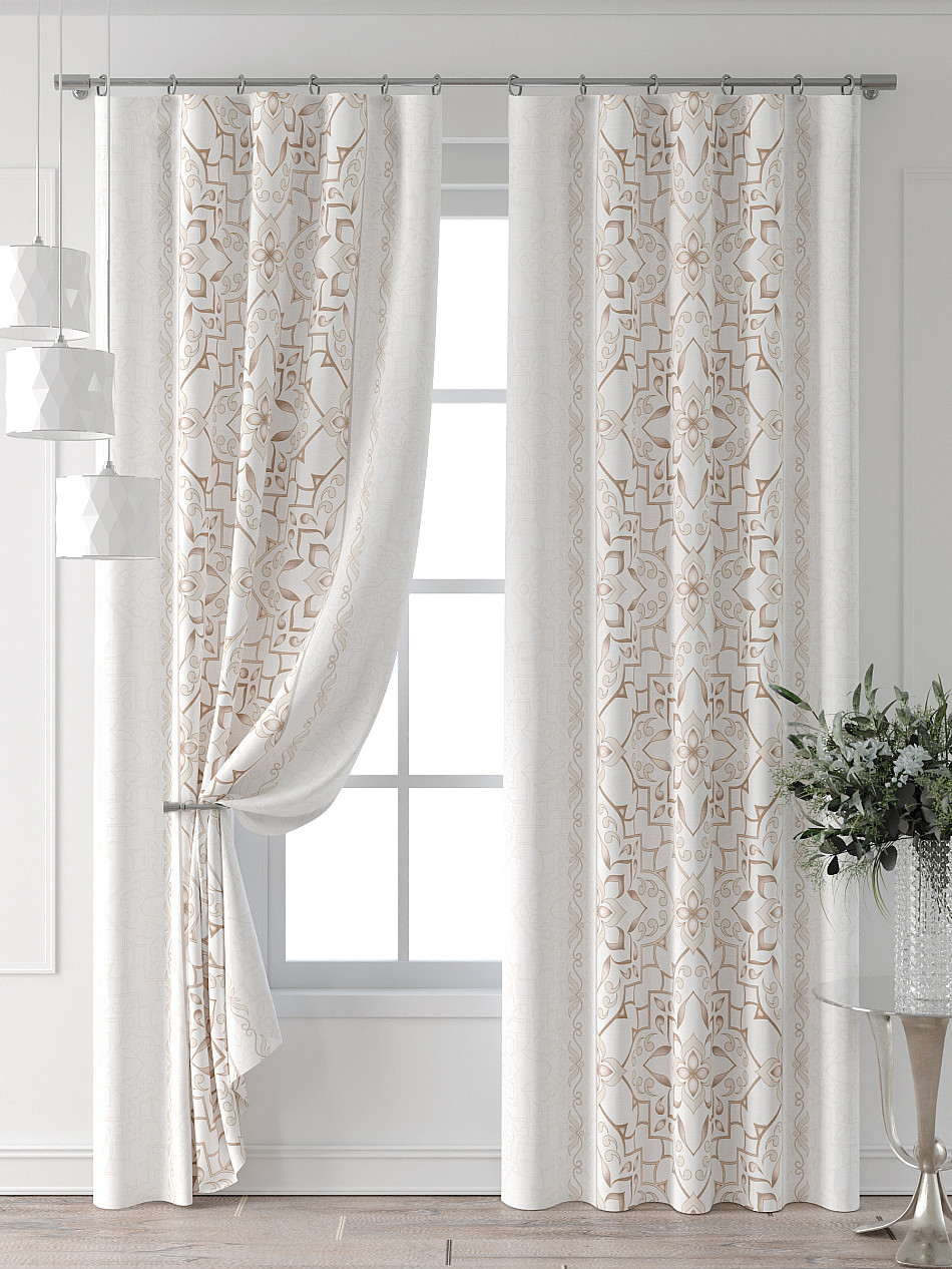 Портьеры 2 шт: Комплект штор из портьерной ткани с печатным рисунком. Фактура ткани прекрасно гармонирует с любым интерьером, а печатный рисунок дает широкие возможности обновить интерьер, фактически не требуя ремонта, за счет огромного выбора. Ткань износостойкая и не требует особого ухода, превосходно драпируется образуя струящиеся складки. Прекрасное решение для создания красоты и уюта с помощью уникальных дизайнов.