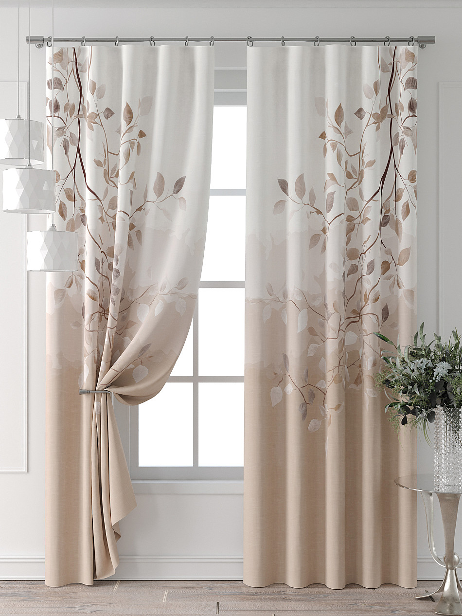 Портьера 2 шт. Подхват - доп.услуга. Комплект штор из легкой портьерной ткани (габардин) оформлен печатным рисунком. Печатный рисунок дает широкие возможности обновить интерьер фактически нет требуя ремонта за счет огромного выбора. Ткани с печатным рисунком безопасны и не содержат токсичных веществ. Не смотря на то что, материал легкий, он имеет высокую плотность, мало загрязнятся и не требует особого ухода даже после стирки, что важно для кухонных занавесок. Шторы не выцветают, не растягиваются, превосходно драпируются, образуя струящиеся складки. Прекрасное решение для создания красоты и уюта с помощью уникальных дизайнов.
