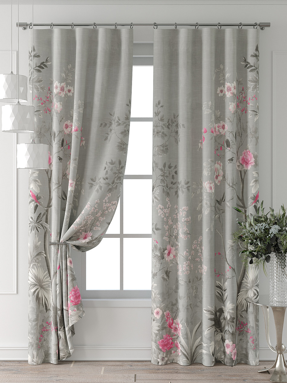 Портьера 2 шт. Подхват - доп.услуга. Комплект штор из легкой портьерной ткани (габардин) оформлен печатным рисунком. Печатный рисунок дает широкие возможности обновить интерьер фактически нет требуя ремонта за счет огромного выбора. Ткани с печатным рисунком безопасны и не содержат токсичных веществ. Не смотря на то что, материал легкий, он имеет высокую плотность, мало загрязнятся и не требует особого ухода даже после стирки, что важно для кухонных занавесок. Шторы не выцветают, не растягиваются, превосходно драпируются, образуя струящиеся складки. Прекрасное решение для создания красоты и уюта с помощью уникальных дизайнов.