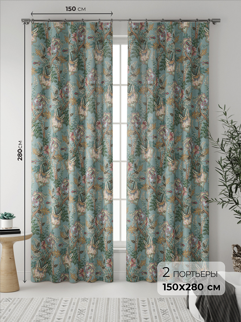 Портьера 2 шт. — 150х280 см. ( Уменьшить высоту ) Крепление: шторная лента (крючки), кулиска Подробнее