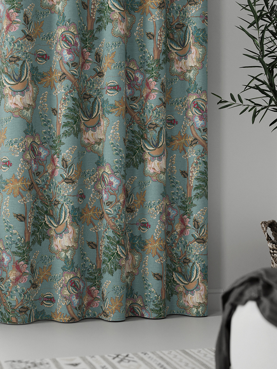 Комплект штор из легкой портьерной ткани (габардин) оформлен печатным рисунком. Печатный рисунок дает широкие возможности обновить интерьер фактически нет требуя ремонта за счет огромного выбора. Ткани с печатным рисунком безопасны и не содержат токсичных веществ. Не смотря на то что, материал легкий, он имеет высокую плотность, мало загрязнятся и не требует особого ухода даже после стирки, что важно для кухонных занавесок. Шторы не выцветают, не растягиваются, превосходно драпируются, образуя струящиеся складки. Прекрасное решение для создания красоты и уюта с помощью уникальных дизайнов.