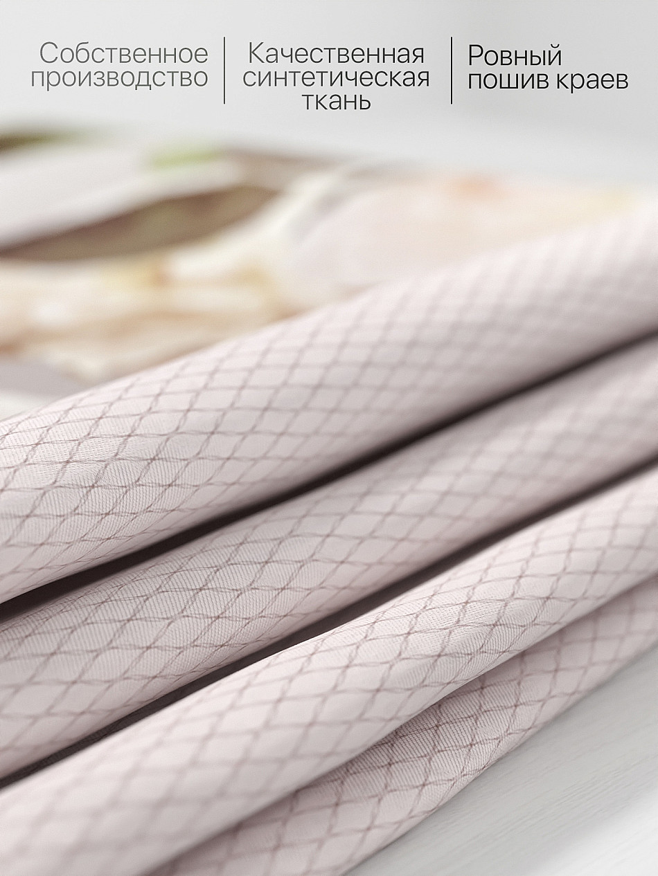 Шторы очень понравились, вид нежный, современный. Общий фон бежево-серый, а на фото розоватый. Ткань достаточно плотная, хорошо затеняет.