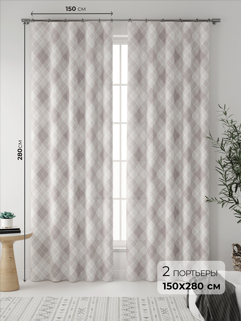 Портьера 150х280 см. — 2 шт. ( Изменить высоту) Крепление: шторная лента (крючки) Подробнее