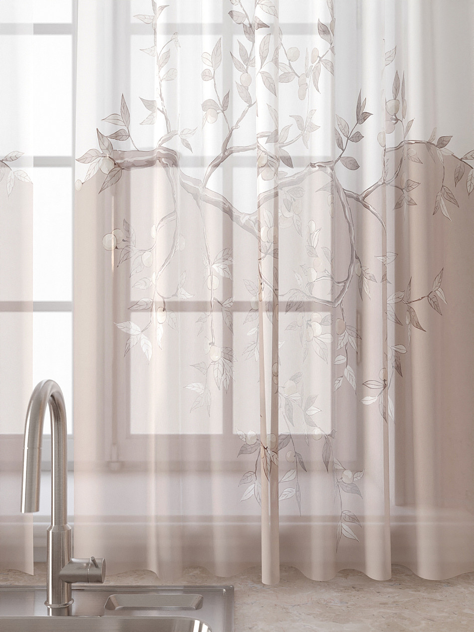 Вуаль 150х180 см. — 2 шт., Ламбрекен 300х40 см. — 1 шт. Комплект штор из вуали оформлены печатным рисунком. Печатный рисунок дает широкие возможности обновить интерьер фактически не требуя ремонта за счет огромного выбора. Ткани с печатным рисунком безопасны и не содержат токсичных веществ. Не смотря на то, что материал легкий, он имеет высокую плотность, мало загрязнятся и не требует особого ухода даже после стирки, что важно для кухонных занавесок. Тюль не выцветает, не растягивается, превосходно драпируются, образуя струящиеся складки. Прекрасное решение для создания красоты и уюта с помощью уникальных дизайнов.