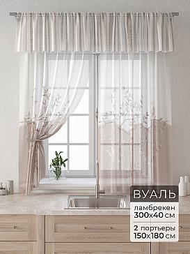 Вуаль 150х180 см — 2 шт., Ламбрекен 300х40 см — 1 шт. ( Изменить высоту) Крепление: шторная лента (крючки), кулиска Подробнее