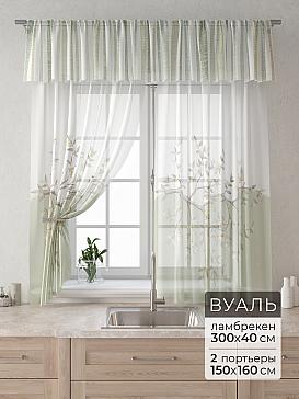 Вуаль 150х160 см — 2 шт., Ламбрекен 300х40 см — 1 шт. ( Изменить высоту) Крепление: шторная лента (крючки), кулиска Подробнее
