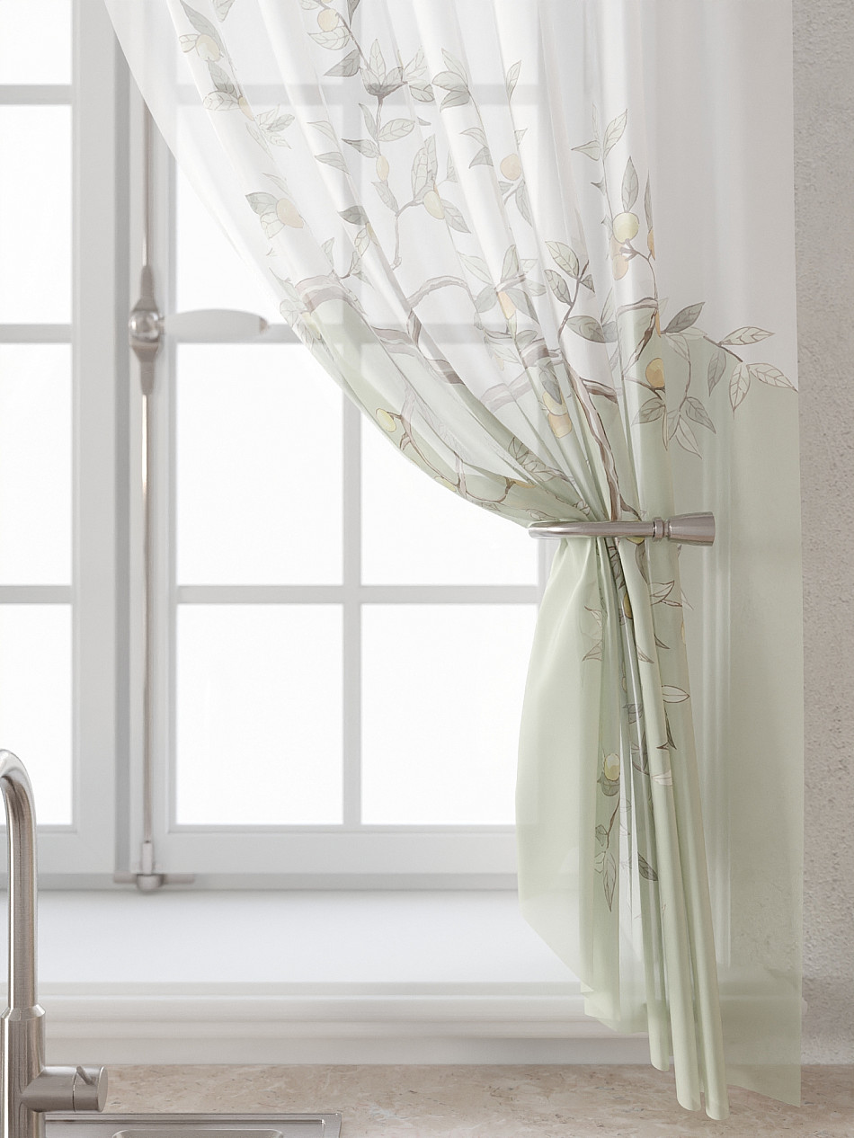 Вуаль 150х180 см. — 2 шт., Ламбрекен 300х40 см. — 1 шт. Комплект штор из вуали оформлены печатным рисунком. Печатный рисунок дает широкие возможности обновить интерьер фактически не требуя ремонта за счет огромного выбора. Ткани с печатным рисунком безопасны и не содержат токсичных веществ. Не смотря на то, что материал легкий, он имеет высокую плотность, мало загрязнятся и не требует особого ухода даже после стирки, что важно для кухонных занавесок. Тюль не выцветает, не растягивается, превосходно драпируются, образуя струящиеся складки. Прекрасное решение для создания красоты и уюта с помощью уникальных дизайнов.