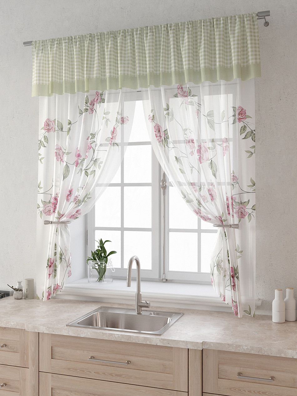 Вуаль 150х160 см. — 2 шт., Ламбрекен 300х40 см. — 1 шт. Комплект штор из вуали оформлены печатным рисунком. Печатный рисунок дает широкие возможности обновить интерьер фактически не требуя ремонта за счет огромного выбора. Ткани с печатным рисунком безопасны и не содержат токсичных веществ. Не смотря на то, что материал легкий, он имеет высокую плотность, мало загрязнятся и не требует особого ухода даже после стирки, что важно для кухонных занавесок. Тюль не выцветает, не растягивается, превосходно драпируются, образуя струящиеся складки. Прекрасное решение для создания красоты и уюта с помощью уникальных дизайнов.