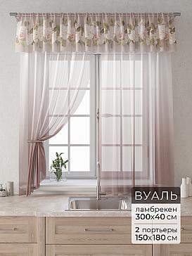 Вуаль 150х180 см — 2 шт., Ламбрекен 300х40 см — 1 шт. ( Изменить высоту) Крепление: шторная лента (крючки), кулиска Подробнее