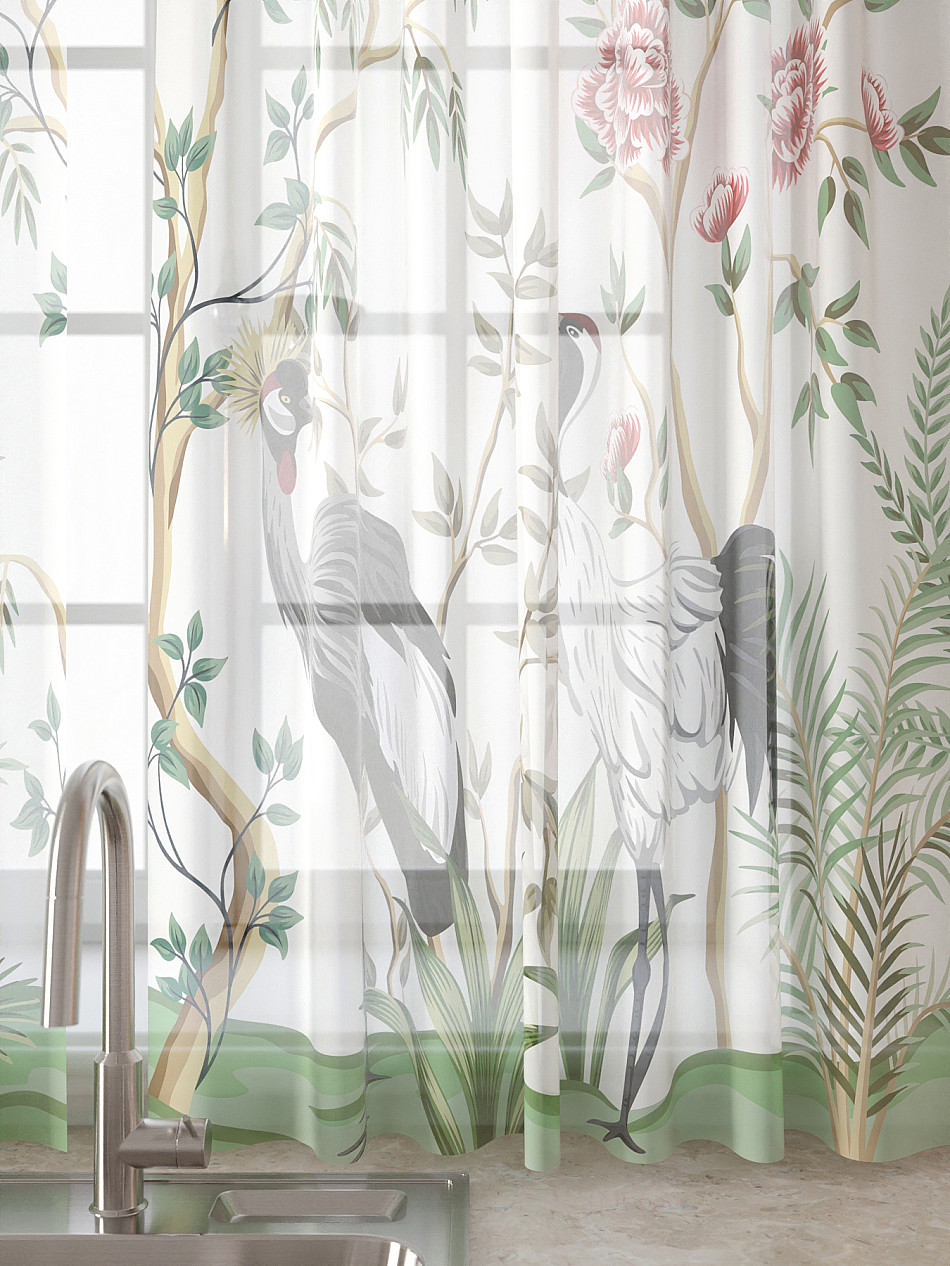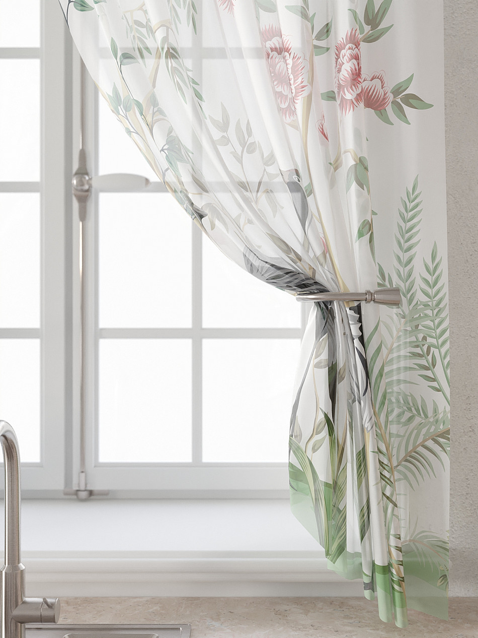 Вуаль 150х180 см. — 2 шт., Ламбрекен 300х40 см. — 1 шт. Комплект штор из вуали оформлены печатным рисунком. Печатный рисунок дает широкие возможности обновить интерьер фактически не требуя ремонта за счет огромного выбора. Ткани с печатным рисунком безопасны и не содержат токсичных веществ. Не смотря на то, что материал легкий, он имеет высокую плотность, мало загрязнятся и не требует особого ухода даже после стирки, что важно для кухонных занавесок. Тюль не выцветает, не растягивается, превосходно драпируются, образуя струящиеся складки. Прекрасное решение для создания красоты и уюта с помощью уникальных дизайнов.