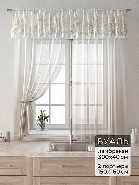 Вуаль 150х160 см — 2 шт., Ламбрекен 300х40 см — 1 шт. ( Изменить высоту) Крепление: шторная лента (крючки), кулиска Подробнее