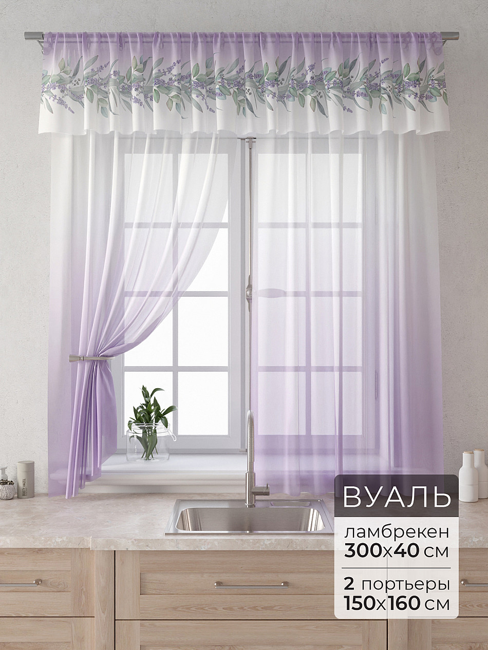 Вуаль 150х160 см. — 2 шт., Ламбрекен 300х40 см. — 1 шт. Комплект штор из вуали оформлены печатным рисунком. Печатный рисунок дает широкие возможности обновить интерьер фактически не требуя ремонта за счет огромного выбора. Ткани с печатным рисунком безопасны и не содержат токсичных веществ. Не смотря на то, что материал легкий, он имеет высокую плотность, мало загрязнятся и не требует особого ухода даже после стирки, что важно для кухонных занавесок. Тюль не выцветает, не растягивается, превосходно драпируются, образуя струящиеся складки. Прекрасное решение для создания красоты и уюта с помощью уникальных дизайнов.