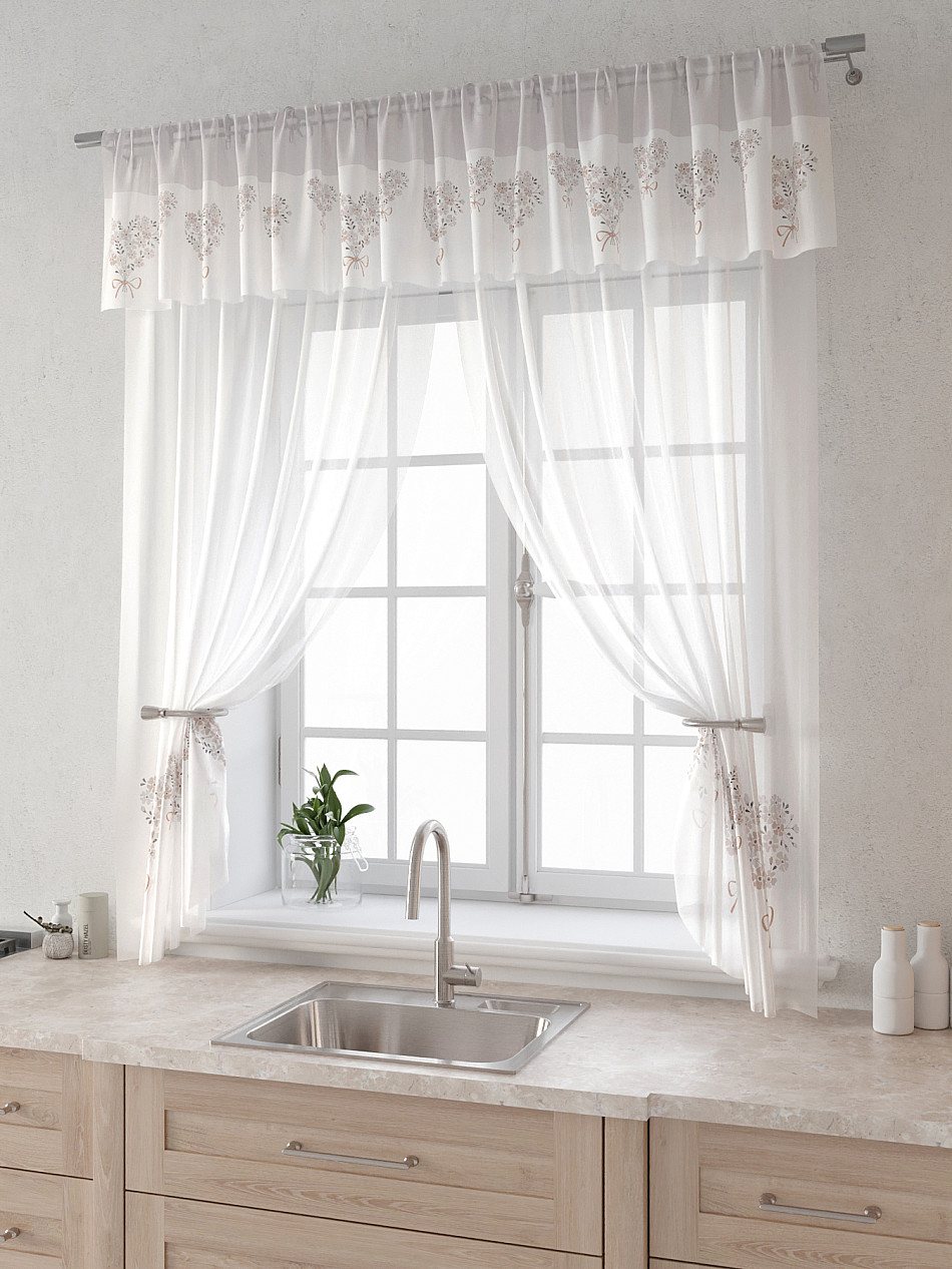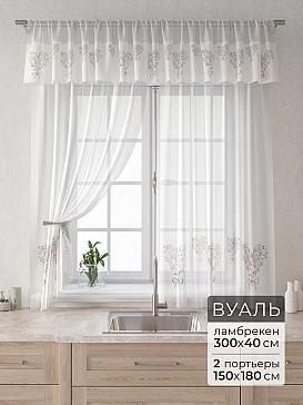 Вуаль 150х180 см — 2 шт., Ламбрекен 300х40 см — 1 шт. ( Изменить высоту) Крепление: шторная лента (крючки), кулиска Подробнее