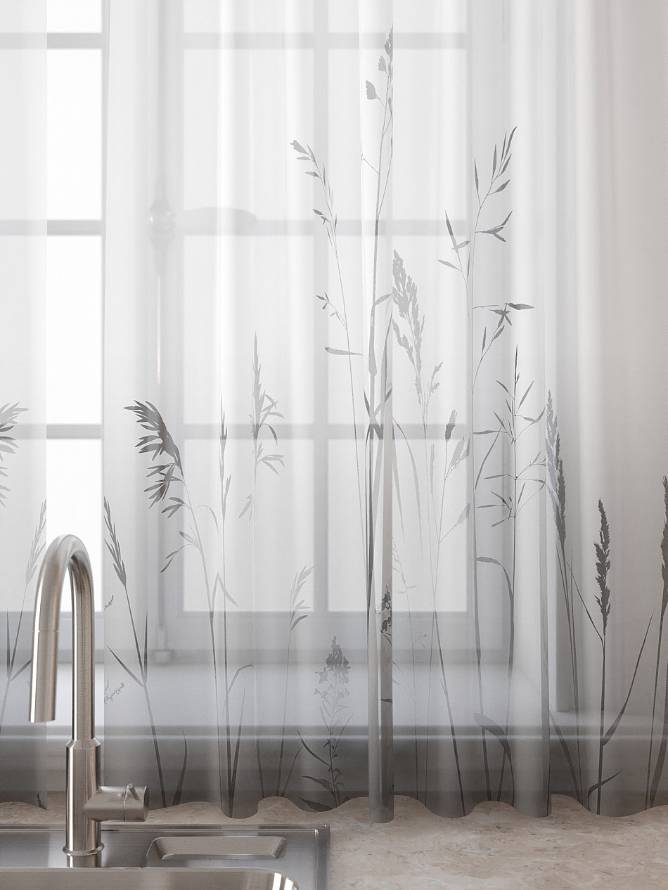 Вуаль 150х180 см. — 2 шт., Ламбрекен 300х40 см. — 1 шт. Комплект штор из вуали оформлены печатным рисунком. Печатный рисунок дает широкие возможности обновить интерьер фактически не требуя ремонта за счет огромного выбора. Ткани с печатным рисунком безопасны и не содержат токсичных веществ. Не смотря на то, что материал легкий, он имеет высокую плотность, мало загрязнятся и не требует особого ухода даже после стирки, что важно для кухонных занавесок. Тюль не выцветает, не растягивается, превосходно драпируются, образуя струящиеся складки. Прекрасное решение для создания красоты и уюта с помощью уникальных дизайнов.