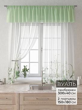 Вуаль 150х180 см — 2 шт., Ламбрекен 300х40 см — 1 шт. ( Изменить высоту) Крепление: шторная лента (крючки), кулиска Подробнее