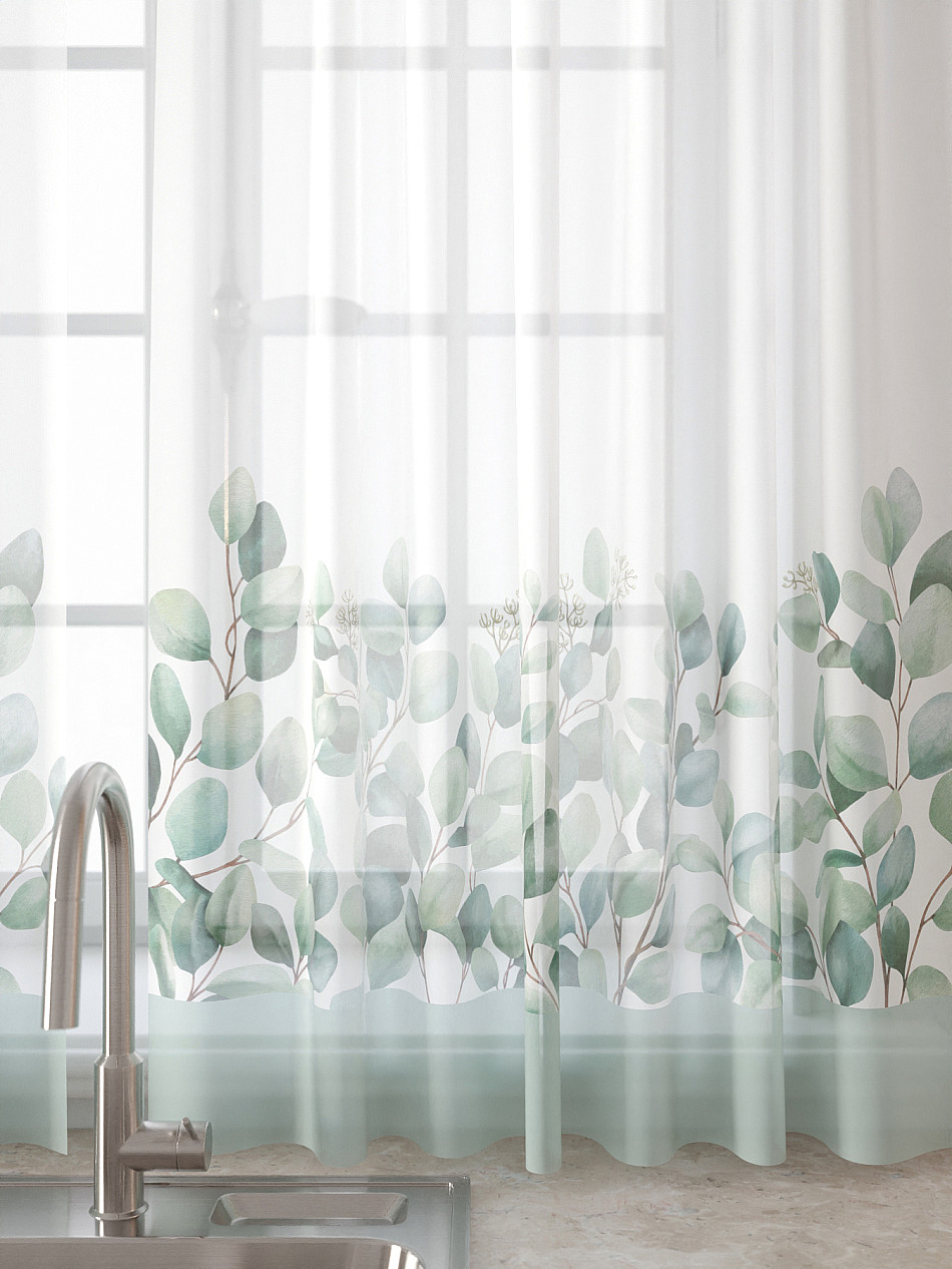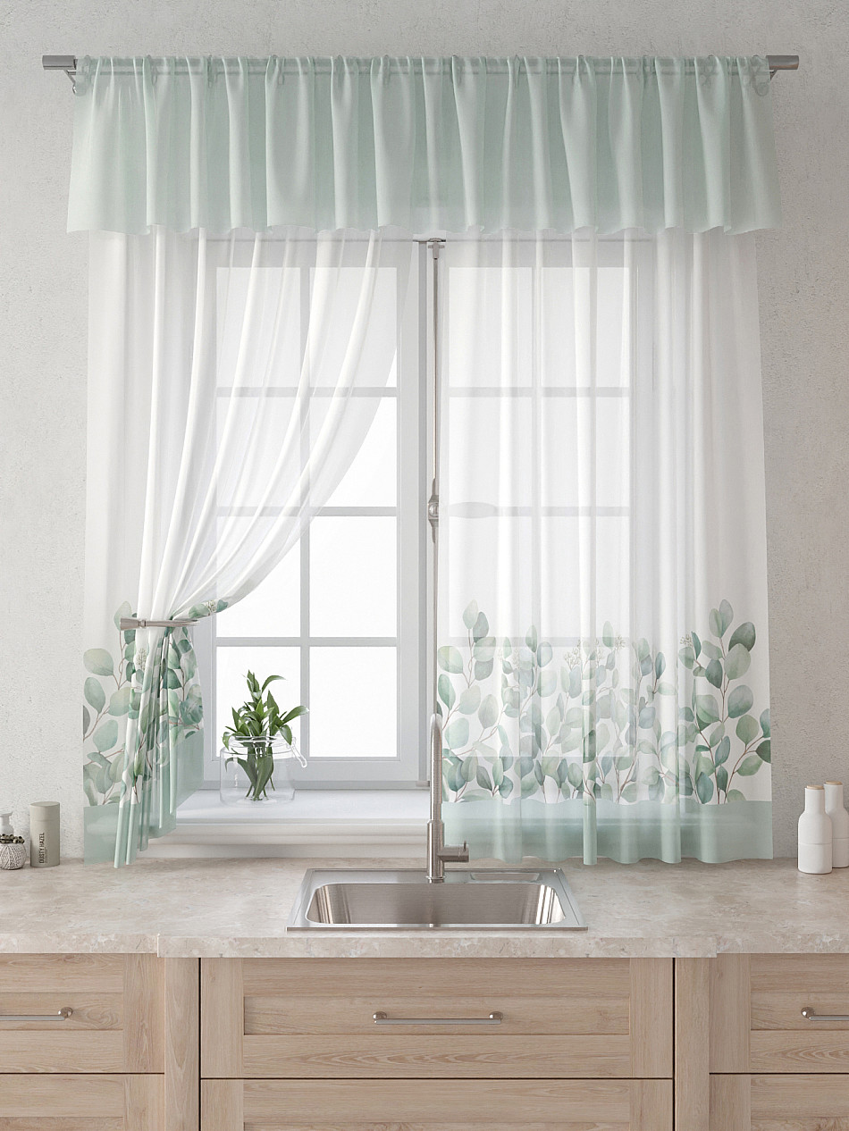 Вуаль 150х160 см. — 2 шт., Ламбрекен 300х40 см. — 1 шт. Комплект штор из вуали оформлены печатным рисунком. Печатный рисунок дает широкие возможности обновить интерьер фактически не требуя ремонта за счет огромного выбора. Ткани с печатным рисунком безопасны и не содержат токсичных веществ. Не смотря на то, что материал легкий, он имеет высокую плотность, мало загрязнятся и не требует особого ухода даже после стирки, что важно для кухонных занавесок. Тюль не выцветает, не растягивается, превосходно драпируются, образуя струящиеся складки. Прекрасное решение для создания красоты и уюта с помощью уникальных дизайнов.