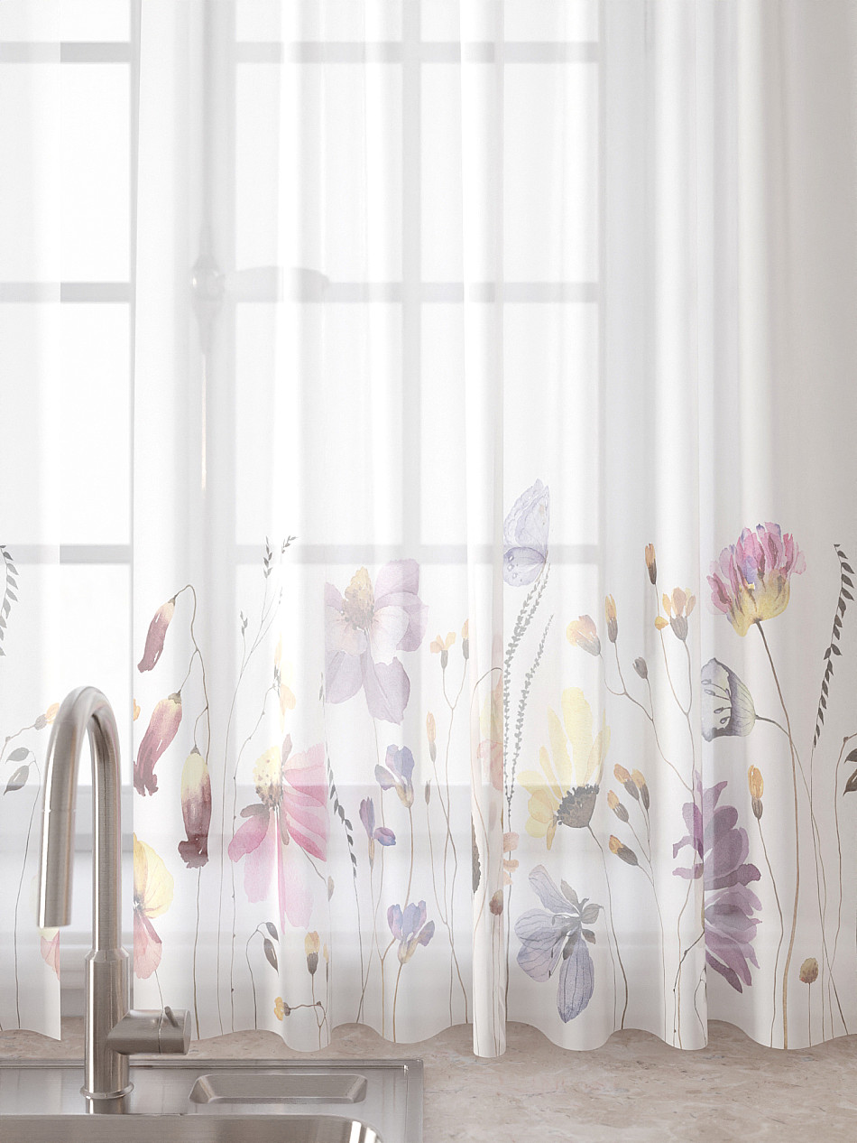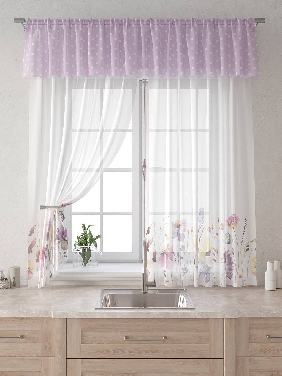 Вуаль 150х160 см. — 2 шт., Ламбрекен 300х40 см. — 1 шт. Комплект штор из вуали оформлены печатным рисунком. Печатный рисунок дает широкие возможности обновить интерьер фактически не требуя ремонта за счет огромного выбора. Ткани с печатным рисунком безопасны и не содержат токсичных веществ. Не смотря на то, что материал легкий, он имеет высокую плотность, мало загрязнятся и не требует особого ухода даже после стирки, что важно для кухонных занавесок. Тюль не выцветает, не растягивается, превосходно драпируются, образуя струящиеся складки. Прекрасное решение для создания красоты и уюта с помощью уникальных дизайнов.