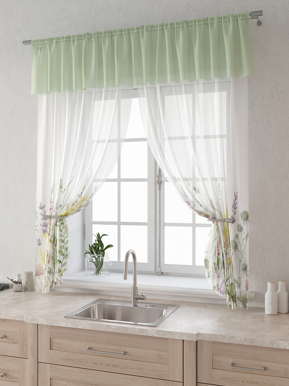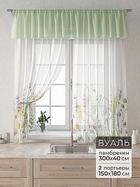 Вуаль 150х180 см. — 2 шт., Ламбрекен 300х40 см. — 1 шт. Комплект штор из вуали оформлены печатным рисунком. Печатный рисунок дает широкие возможности обновить интерьер фактически не требуя ремонта за счет огромного выбора. Ткани с печатным рисунком безопасны и не содержат токсичных веществ. Не смотря на то, что материал легкий, он имеет высокую плотность, мало загрязнятся и не требует особого ухода даже после стирки, что важно для кухонных занавесок. Тюль не выцветает, не растягивается, превосходно драпируются, образуя струящиеся складки. Прекрасное решение для создания красоты и уюта с помощью уникальных дизайнов.